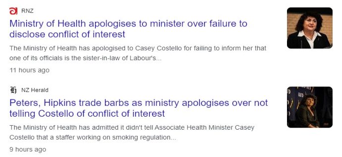 Dr Sarfati's Ministry completely failed to notify it's minister that one of their senior health officials had an actual conflict of interest, and is, the sister-in-law to the opposition Health Spokeswoman and sacked (at the 2023 general election) former Health Minister Ayesha Verrall.