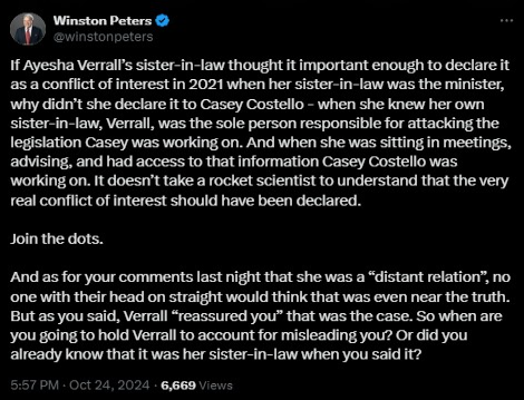 The next day Winston Peters posted on X again calling out the Labour leader.