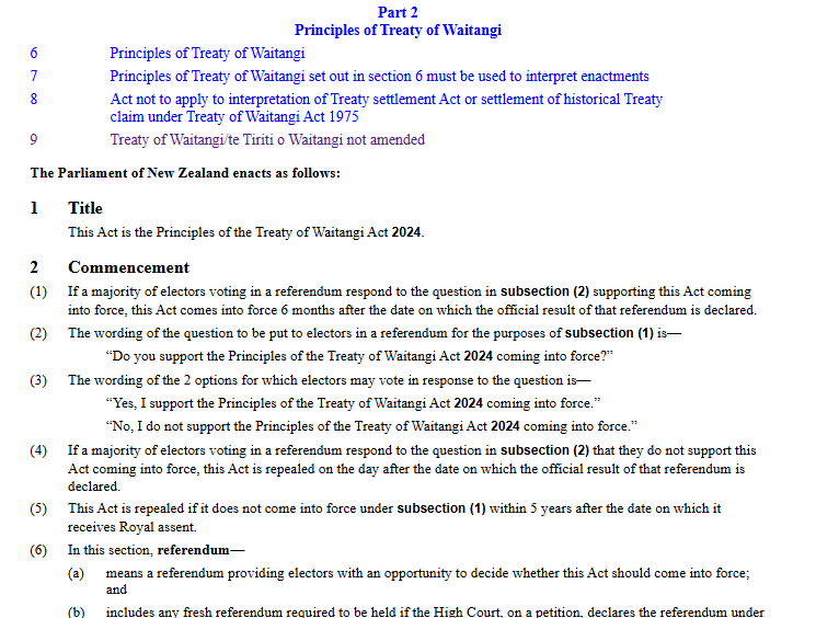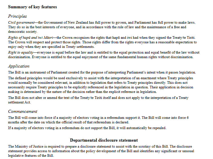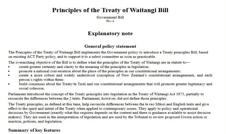 Below is the actual Treaty Principles Bill Officially the 'Principles of the Treaty of Waitangi Bill'.